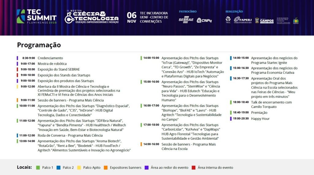 Com foco no desenvolvimento sustentável e na consolidação de Campos dos Goytacazes como um território de tecnologia e empreendedorismo, o TEC SUMMIT busca ampliar conexões, inspirar novos negócios e aproximar ideias inovadoras das oportunidades que movem o futuro. “Eventos como este, aliados ao amadurecimento tecnológico das empresas e startups locais, são verdadeiros indicadores de que o nosso ecossistema está em crescimento”, completa Túlio.